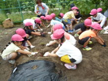 年長児さんが4月末に植えたお芋の苗がいよいよ大きくなり、 先日、「ひかり組」さんで、お芋ほりをしました! 軍手を持ってきてもらい、なかなか軍手を装着するのに、 「指が無い~!」等言って、てこずっていましたが・・・(笑) …