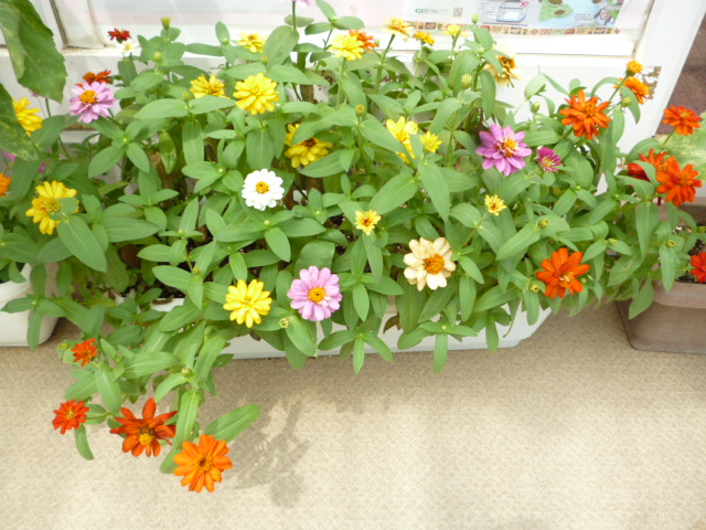 そして、ひまわりとジニアがとってもきれいに咲いているので玄関に飾っています!