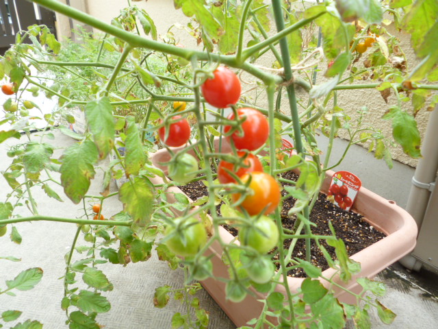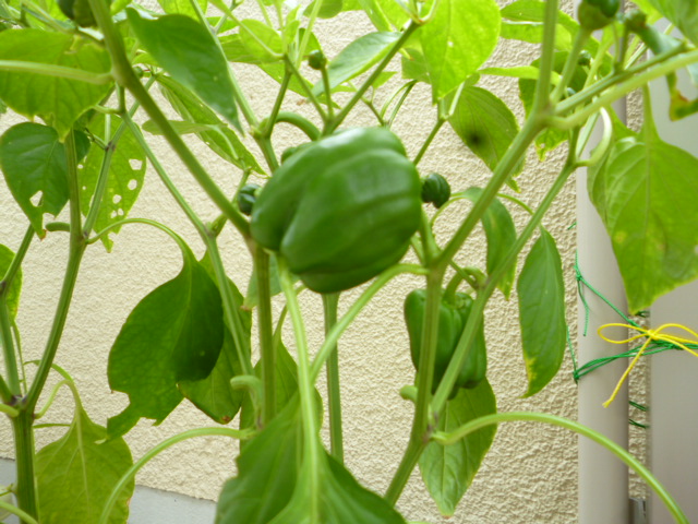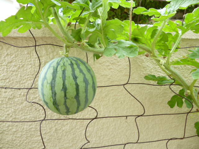 大きい組さんのベランダで育てている小玉すいか、ミニトマト、ピーマン、オクラ、