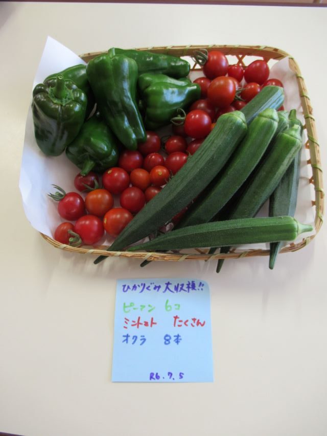 そして、ひかり組のベランダ野菜、オクラ、ピーマン、ミニトマト