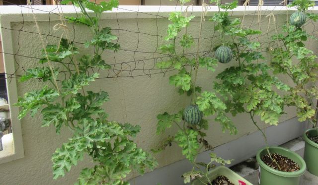 きゅうり、ゴーヤそして、小玉すいかと大収穫です‼