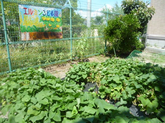 春、エルミン畑に年長児さんが植えた芋づるが秋には立派に生長し、