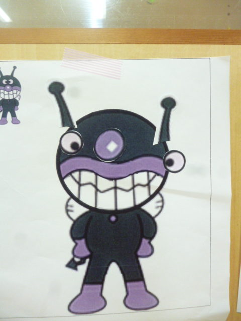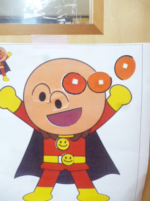 はな組1歳児さんは、大好きなアンパンマンの目隠しをしない「福笑い」に挑戦😊