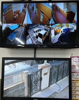 平常時は写真のとおり、入り口門、園庭、廊下、駐車場のみをモニターで映し、