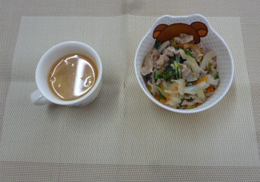 今日の給食は、「豚丼」と「厚揚げのみそ汁」 おやつは、「牛乳」と「お楽しみおやつ」です。