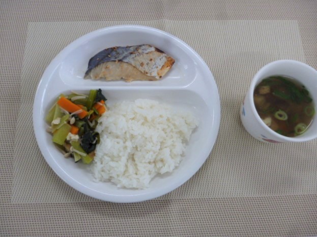 令和4年6月16日(木)の献立 2022/06/16 今日の給食は、「さわらのごま照り焼き」、「小松菜とあげの煮浸し」と「豆腐のすまし汁」 おやつは、「牛乳」、「さつまいもおやき」と「ぽりぽり小魚」です。