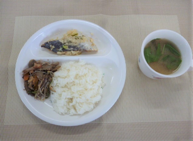 今日の給食は、「さわらのレモン醤油焼き」、「きんぴらごぼう」と「豆腐のみそ汁」