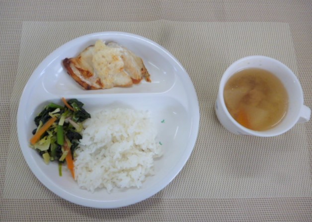 令和5年2月21日(火)の献立 2023/02/21 今日の給食は、「さわらのマヨネーズ焼き」、「ほうれん草のソテー」と「チキンスープ」 おやつは、「牛乳」、「チーズおかかおにぎり」と「ぽりぽり小魚」です。 ★ほし組さんとつき組さんは、おやつの「チーズおかかおにぎり」を自分たちで握って食べました🍙