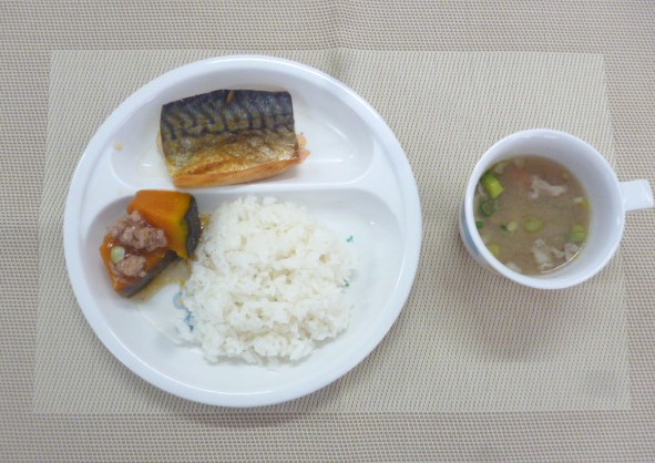 令和6年2月9日(金)の献立 2024/02/09 今日の給食は、「さばのカレー焼き」、「かぼちゃのそぼろあんかけ」と「豚汁」 おやつは、「牛乳」、「バナナ」と「新潟仕込み」です。 ★おやつの「サラダせんべい」は、「新潟仕込み」に変更となりました。