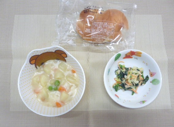 令和6年2月14日(水)の献立 2024/02/14 今日の給食は、「イエローロールパン」「クリームシチュー」と「ほうれん草とツナのサラダ」 おやつは、「牛乳」、「ココアミルク寒天」と「ぱりんこ」です。 ★今日のおやつはバレンタインデーを意識したおやつです🍫 今日の「ソフトせんべい」は、「ぱりんこ」です。