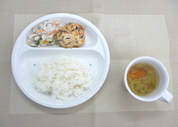 令和6年4月12日(金)の献立 2024/04/12 今日は、今年度最初のお誕生日会です🍰✨ 4月生まれのお友達、お誕生日おめでとう🌷 今日の給食は、「鶏つくねの照り焼き」、「れんこんサラダ」と「キャベツのスープ」 おやつは、「牛乳」と「はちみつレモンケーキ」です。 ★「はちみつレモンケーキ」は新メニューです🍴