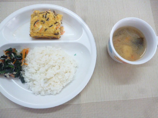 令和7年2月13日(木)の献立 2025/02/13 今日の給食は、「擬製豆腐」、「ほうれん草のしらす和え」と「切干大根のみそ汁」 おやつは、「牛乳」と「マヨコーンピザトースト」です。 ★「マヨコーンピザトースト」は新メニューです🍴 ★つき組さんは、エプロンを着て「マヨコーンピザトースト」のクッキングをしました!