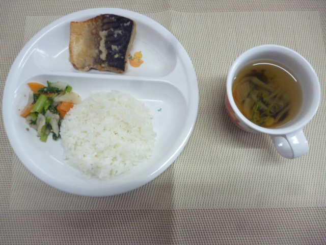 今日の給食は「鯖のおろし煮」と「かぶのごまあえ」と「野菜のすまし汁」