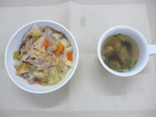 今日の給食は「中華丼」と「わかめと豆腐のすまし汁」