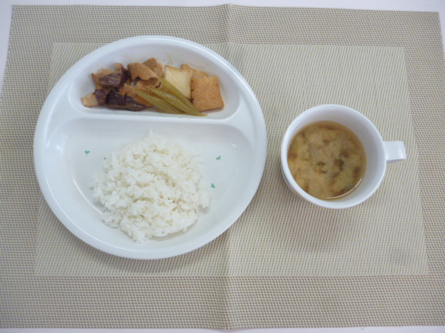 今日の給食は「ごはん」と「ブリの照り焼き」と「玉葱の味噌汁」
