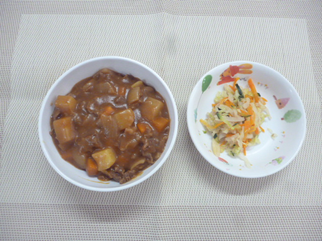 今日の給食は「ごはん」「カレー」「切干大根のサラダ」です。