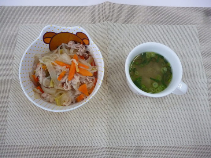 今日の給食は、「豚丼」と「あおさのみそ汁」