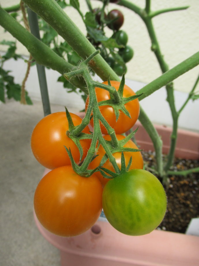 真っ赤なトマトだけでなく、色々なトマトが出来て、おもしろいです。