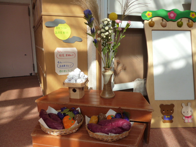 エルミンの大きいクラス、ひかり組さんが、白いお団子・お供え物等を