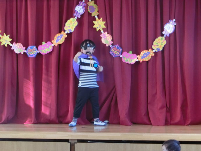 そして、全クラスで集まって「ハロウィンパーティー」をしました。