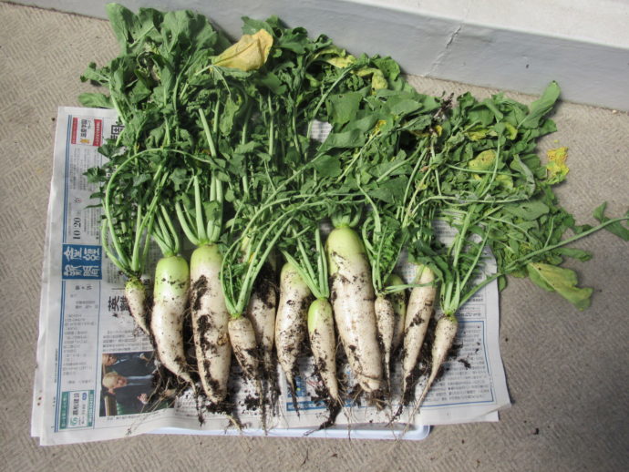 今年の大根は「あおむし」がたくさん葉を食べつくしてくれました!