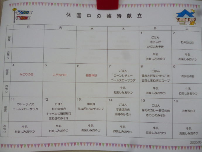 わが、エルミンこども園の「管理栄養士さん」が休園中の臨時献立を