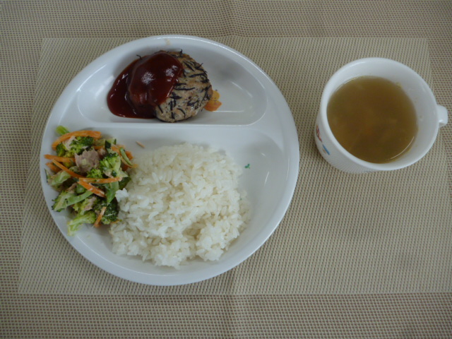 令和3年6月29日(火)の献立 2021/06/29 今日の給食は、「豆腐ハンバーグ」、「ブロッコリーとツナのサラダ」と「おくらスープ」 おやつは、「牛乳」と「サーターアンダギー」です。 今日の「おくらスープ」には、ひかり組さんが育てたオクラも入っています!