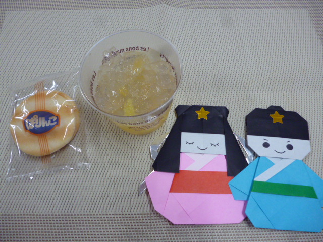 おやつは、「牛乳」、「きらきらゼリー」と「ぱりんこ」です。