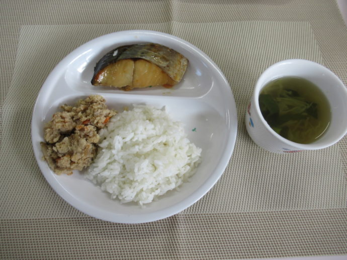 今日の給食は、「さわらのバター醤油焼き」、「卯の花炒り」と「キャベツのすまし汁」 おやつは、「牛乳」、「きなこ団子」と「ぽりぽり小魚」です。
