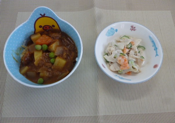 今日の給食は、「カレーライス」と「れんこんサラダ」