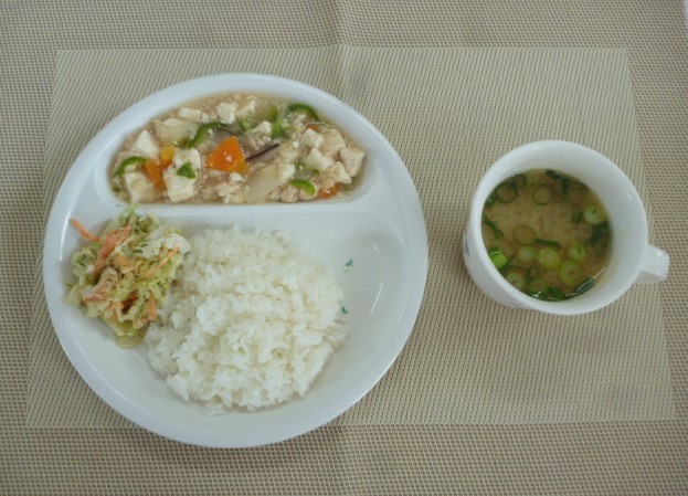 令和4年4月18日(月)の献立 2022/04/18 今日の給食は、「豆腐のきのこあんかけ」、「キャベツののりマヨネーズ和え」と「じゃが芋のみそ汁」 おやつは、「牛乳」、「オレンジ」と「しょうゆせんべい」です。 ★おやつの「野菜かりんとう」は「しょうゆせんべい」に変更となりました。
