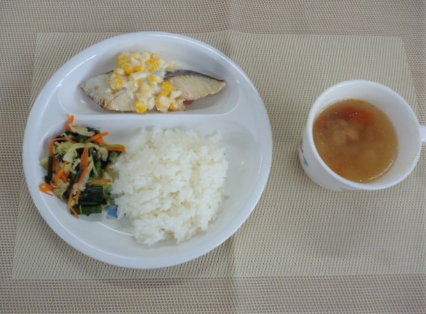 令和5年2月7日(火)の献立 2023/02/07 今日の給食は、「さわらのマヨネーズ焼き」、「ほうれん草のソテー」と「チキンスープ」 おやつは、「牛乳」、「チーズおかかおにぎり」と「ぽりぽり小魚」です。 ★「チーズおかかおにぎり」は新メニューです🍴