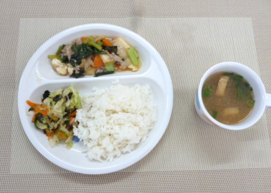 令和5年6月28日(水)の献立 2023/06/28 今日の給食は、「厚揚げの野菜あんかけ」、「キャベツの和風和え」と「もやしのみそ汁」 おやつは、「牛乳」、「五平もち」と「こんぶ」です。 ★今日のおやつは、「オレンジ蒸しパン」と「動物ビスケット」の予定でしたが、 明日予定の「五平もち」と「こんぶ」に入れ替わりました。