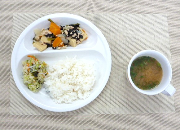 令和5年7月28日(金)の献立 2023/07/28 今日の給食は、「高野豆腐とひき肉の煮物」、「キャベツとじゃこの酢の物」と「玉ねぎのみそ汁」 おやつは、「牛乳」、「バナナ」と「まがりせんべい」です。 ★今日の「ソフトせんべい」は、「まがりせんべい」になりました。