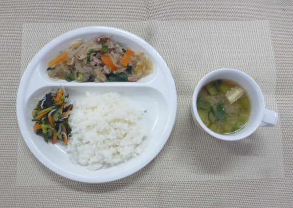 令和6年1月18日(木)の献立 2024/01/18 今日の給食は、「春雨の五目炒め」、「きゅうりとしらすの酢の物」と「豆腐のみそ汁」 おやつは、「牛乳」、「マシュマロおこし」と「こんぶ」です。 ★「春雨の五目炒め」は新メニューです🍴