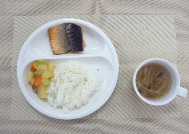 令和6年3月14日(木)の献立 2024/03/14 今日の給食は、「さばのしょうゆ焼き」、「じゃが芋きんぴら」と「切干大根のすまし汁」 おやつは、「牛乳」、「牛乳みかん寒天」と「ハッピーターン」です。 ★「さばのみそ煮」は「さばのしょうゆ焼き」に変更となりました。