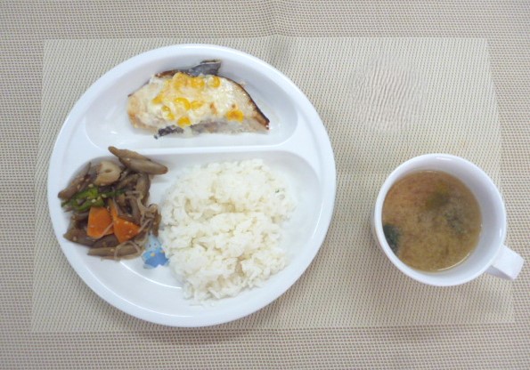 令和6年4月19日(金)の献立 2024/04/19 今日の給食は、「さわらのマヨネーズ焼き」、「きんぴらごぼう」と「ほうれん草のみそ汁」 おやつは、「牛乳」、「りんご」と「ムーンライト」です。 ★「菜の花のみそ汁」は、「ほうれん草のみそ汁」に変更となりました。
