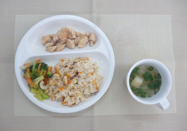 今日の給食は、「筍ごはん」、「鶏肉のさっぱり煮」、「ブロッコリーの塩ごま和え」と