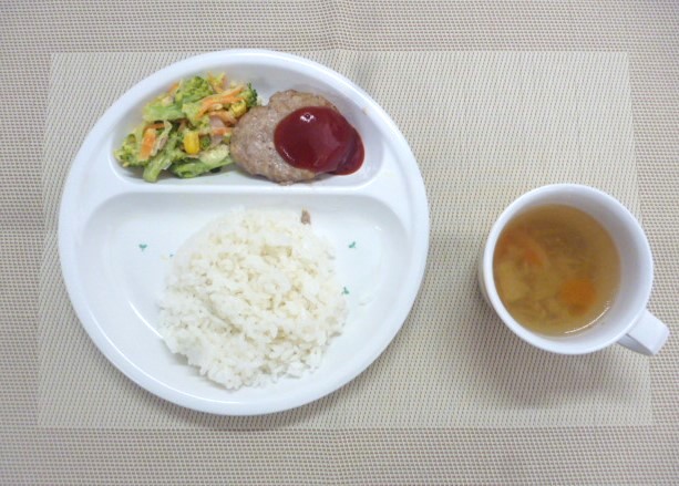 令和6年9月3日(火)の献立 2024/09/03 今日はお誕生日会です🍰✨ 9月生まれのお友達、お誕生日おめでとう🌼 今日の給食は、「豆腐ハンバーグ」、「蒸し野菜のカレーマヨサラダ」と「きのこのスープ」 おやつは、「牛乳」と「メープルケーキ」です。 ★「蒸し野菜のカレーマヨサラダ」は新メニューです🍴
