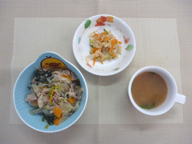 今日の給食は、「豚丼」、「切干大根のサラダ」と「豆腐のみそ汁」