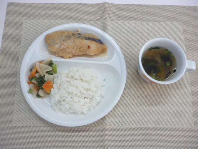 今日の給食は「鯖のおろし煮」と「かぶのごまあえ」と「野菜のすまし汁」