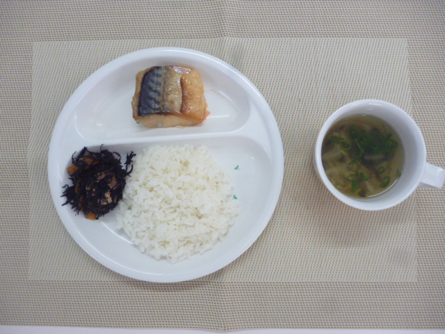 今日の給食は「ごはん」「あじの塩焼き」「ひじきの煮つけ」