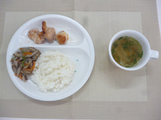 今日の給食は「ごはん」「鶏の桑焼き」「はるさめきんぴら」
