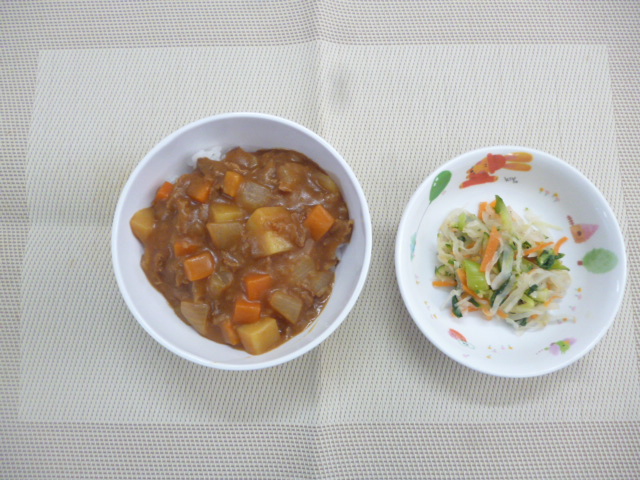 今日の給食は「ごはん」と「カレー」と「切干大根のサラダ」