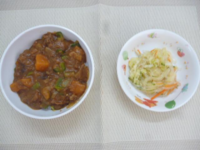 今日の給食は「ごはん」と「夏野菜カレー」と「伴三糸」