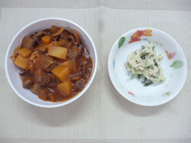 今日の給食は「ハヤシライス」と「ツナサラダ」