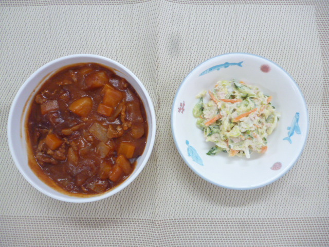今日の給食は「ハヤシライス」と「ツナサラダ」