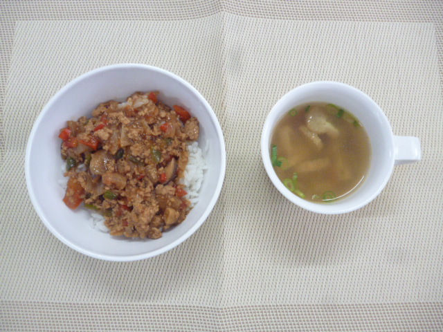 今日の給食は「肉みそ丼」「けんちん汁」です。