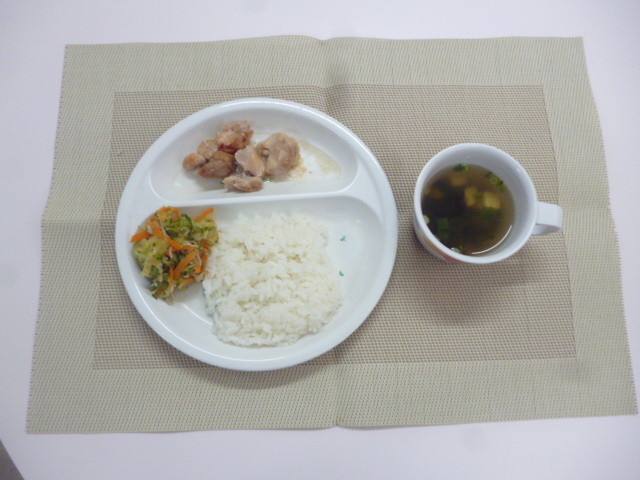 今日の給食は「ごはん」「鶏の桑焼き」「ごま和え」「豆腐のすまし汁」です。