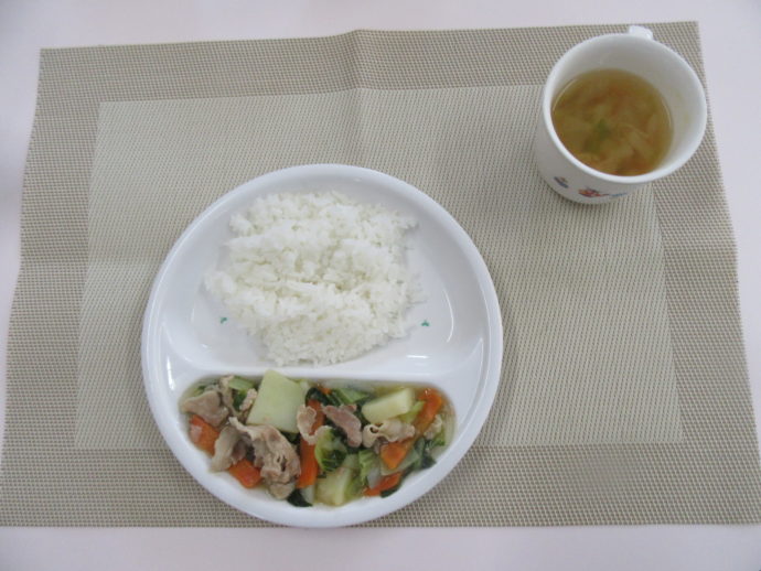 今日の給食は、「トンボーロ風」と「野菜スープ」